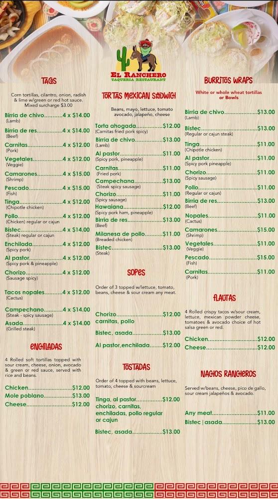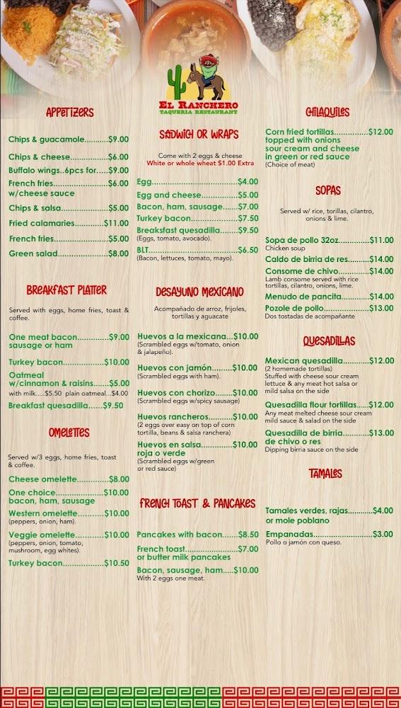 The menu features a variety of classic Mexican dishes, from enticing tacos to hearty burritos. Breakfast options like omelets and French toast round out the offering. Tamales and tortas are made daily, ensuring freshness. Flavors are authentic, highlighting local ingredients. Other favorites include sope, enchiladas, and nachos. There's something for everyone, including vegetarian meals and sweet desserts. Overall, the affordable pricing reflects the effort and quality at El Ranchero.